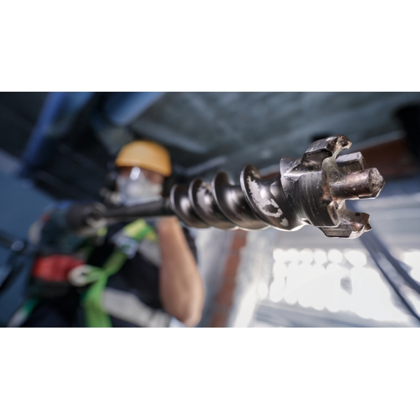 Perforar agujeros grandes en hormigón requiere la broca adecuada. Una broca con un filo lo suficientemente resistente como para cortar el material y un vástago que elimine eficazmente las virutas y el polvo de hormigón. Como la broca PRO SDS max Break Through, diseñada para ayudarle a perforar agujeros grandes una y otra vez.