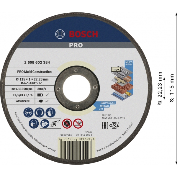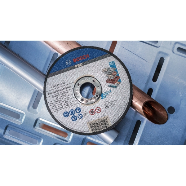 Trabajar en una obra implica cortar a menudo diferentes materiales. Un disco de corte versátil le ayuda a ahorrar tiempo y esfuerzo. Por eso creamos el PRO Multi Construction. Utilizamos una mezcla especial de abrasivos para garantizar un corte eficiente de diferentes materiales.