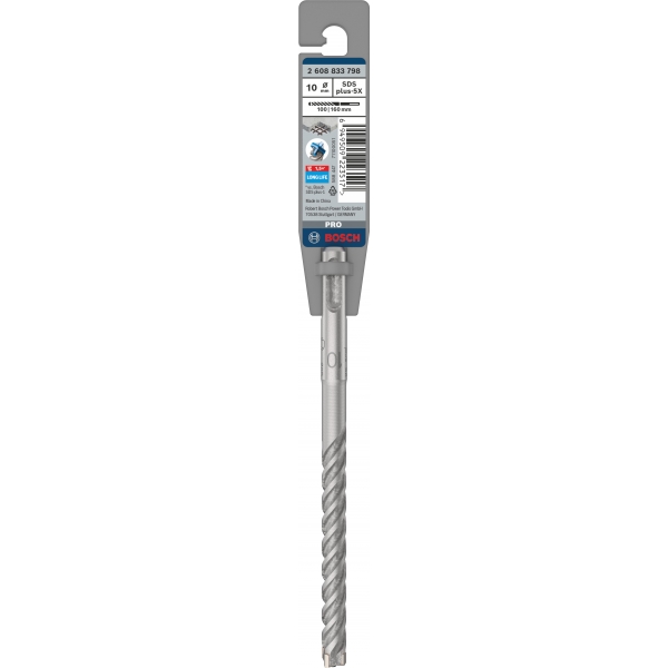 Fabricada con una cruz de carburo de tungsteno de alta calidad incrustada, la broca PRO SDS plus-5X, con su filo de 4 filos, ofrece comodidad a los profesionales que necesitan realizar perforaciones precisas en hormigón armado. Esta broca para mampostería cuenta con 4 flautas que eliminan el polvo del punto de impacto y garantizan un rendimiento eficiente y duradero.