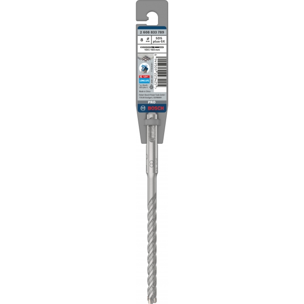 Fabricada con una cruz de carburo de tungsteno de alta calidad incrustada, la broca PRO SDS plus-5X, con su filo de 4 filos, ofrece comodidad a los profesionales que necesitan realizar perforaciones precisas en hormigón armado. Esta broca para mampostería cuenta con 4 flautas que eliminan el polvo del punto de impacto y garantizan un rendimiento eficiente y duradero.