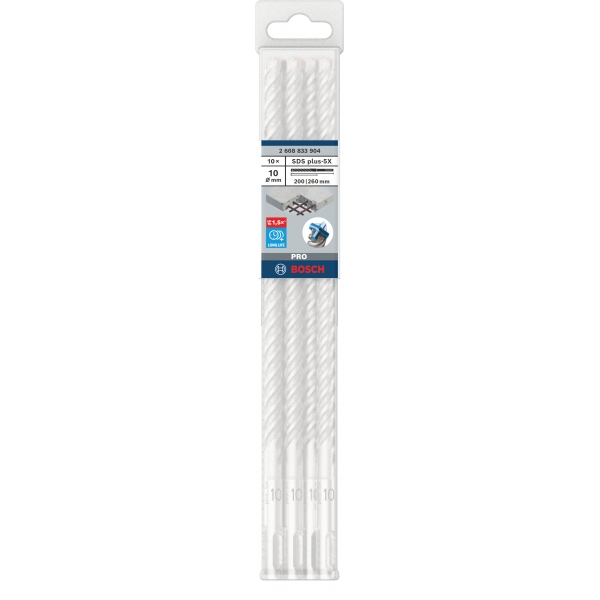 Fabricada con una cruz de carburo de tungsteno de alta calidad incrustada, la broca PRO SDS plus-5X, con su filo de 4 filos, ofrece comodidad a los profesionales que necesitan realizar perforaciones precisas en hormigón armado. Esta broca para mampostería cuenta con 4 flautas que eliminan el polvo del punto de impacto y garantizan un rendimiento eficiente y duradero.