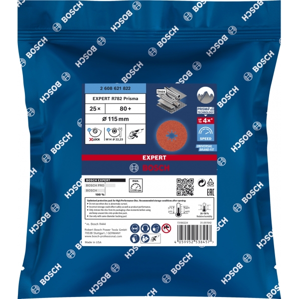 El disco de acero inoxidable Bosch EXPERT R782 Prisma permite un desbaste de acero inoxidable mucho más rápido que los discos convencionales, sin comprometer la calidad. Por lo tanto, supone un avance en la productividad para los profesionales que utilizan amoladoras angulares.