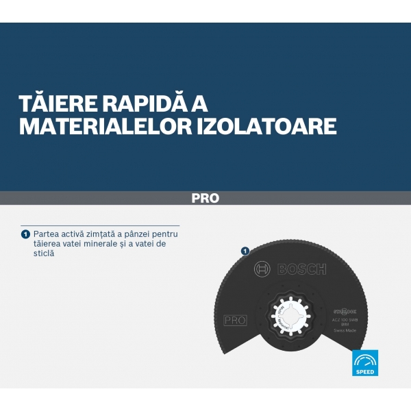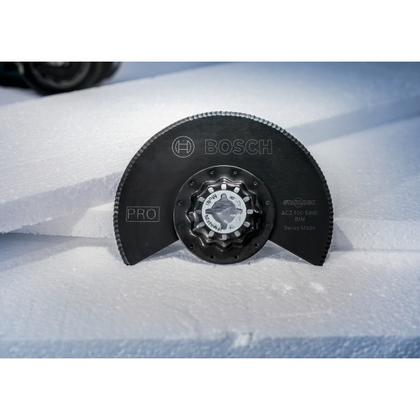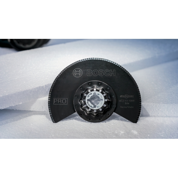 La hoja segmentada PRO ACZ 100 SWB utiliza un filo dentado especialmente diseñado para cortar eficazmente todo tipo de materiales blandos. Los profesionales la encontrarán especialmente útil para cortar aislamientos a medida y recortar los que sobresalen. Además, la PRO ACZ 100 SWB también es eficaz en cuero y caucho. Su hoja bimetálica está diseñada para garantizar su durabilidad.