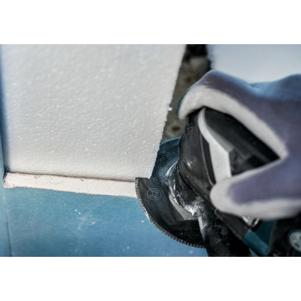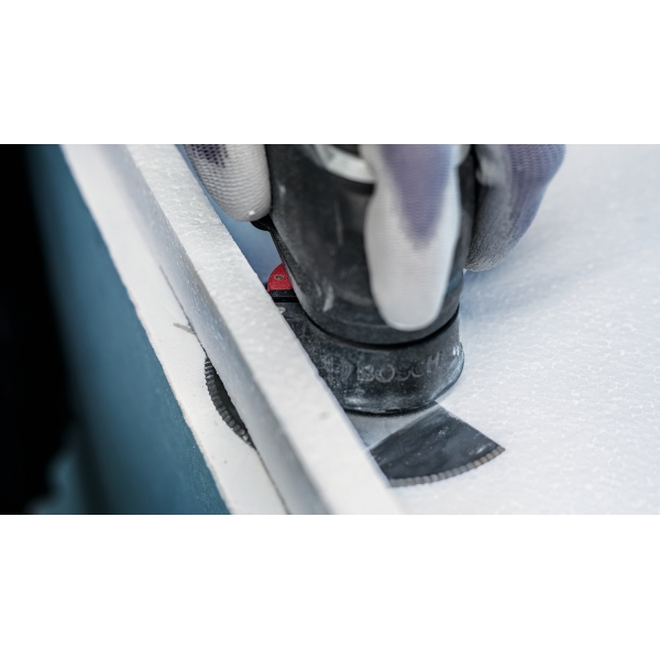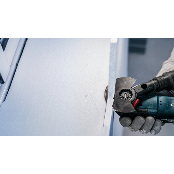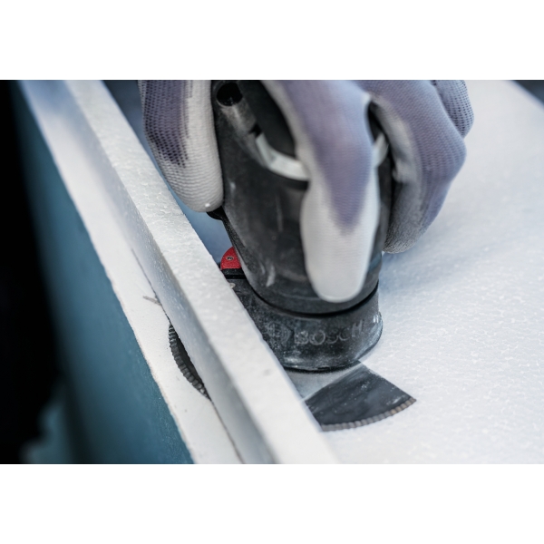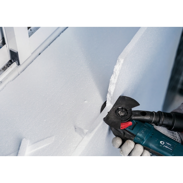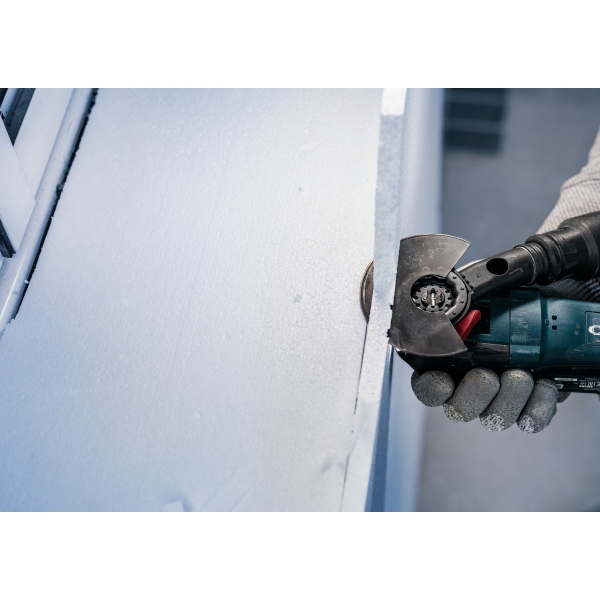 Los materiales aislantes como el poliestireno se utilizan ampliamente en la industria de la construcción, pero a menudo se cortan a mano debido a la falta de herramientas eléctricas adecuadas. Con la PRO ACZ 100 SWB, los profesionales pueden trabajar más rápido, utilizando herramientas multifuncionales para cortar tela asfáltica, poliestireno, espuma de poliuretano, lana de vidrio, alfombras o incluso cartón.