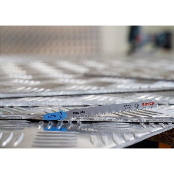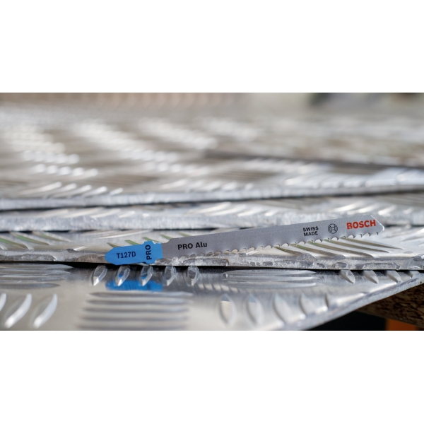 ¿Trabajas en metal y necesitas una hoja de sierra de calar resistente para cortar aluminio rápidamente? Prueba la hoja PRO Alu T127D. La hemos creado para ayudarte a realizar cortes rápidos en piezas de hasta 15 mm de espesor, una y otra vez.