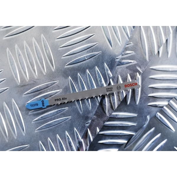 ¿Trabajas en metal y necesitas una hoja de sierra de calar resistente para cortar aluminio rápidamente? Prueba la hoja PRO Alu T127D. La hemos creado para ayudarte a realizar cortes rápidos en piezas de hasta 15 mm de espesor, una y otra vez.