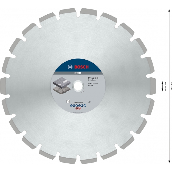 Los segmentos de diamante extra altos de la cuchilla PRO Asphalt garantizan un rendimiento eficiente y una larga vida útil. Es una excelente opción para profesionales ocupados que necesitan cortar asfalto a diario.