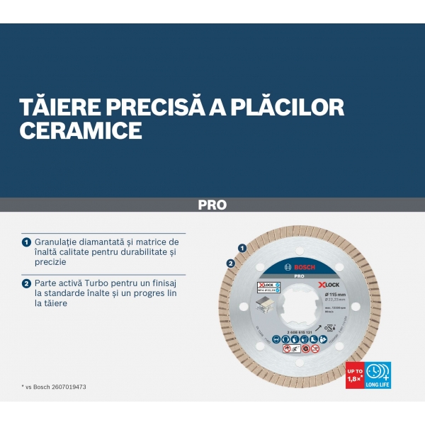Hasta 1,5 veces más preciso que el disco de diamante Bosch 2607019473 para baldosas cerámicas.