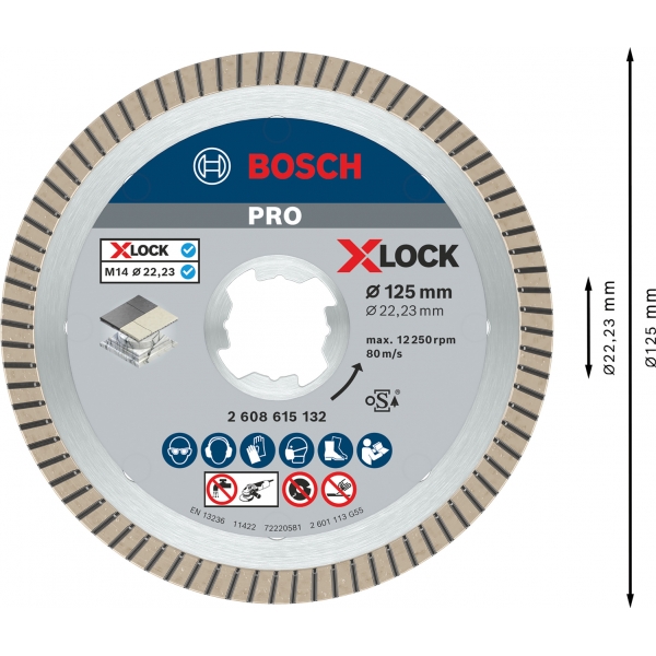 inglésDisco de corte de diamante PRO Ceramic X-Lock, 125 x 22,23 mm.