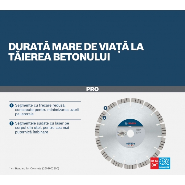 Dura hasta 1,8 veces más que un disco de corte Bosch Standard para hormigón.