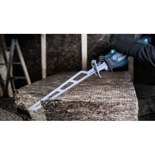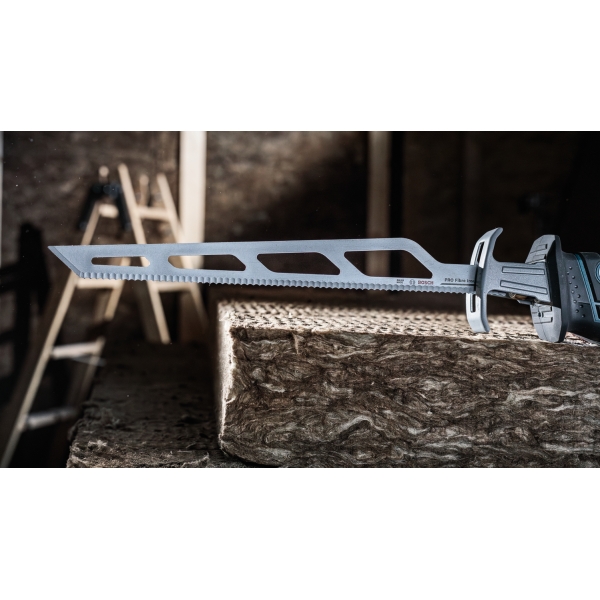 Los profesionales que trabajan con aislamiento térmico de fibra gruesa, como lana de roca y lana de vidrio, necesitarán cortar secciones a medida, a menudo con cierta precisión, para lograr un buen aislamiento. La hoja de sierra recíproca PRO Fiber Insulation S1213AWP está diseñada específicamente para este trabajo.