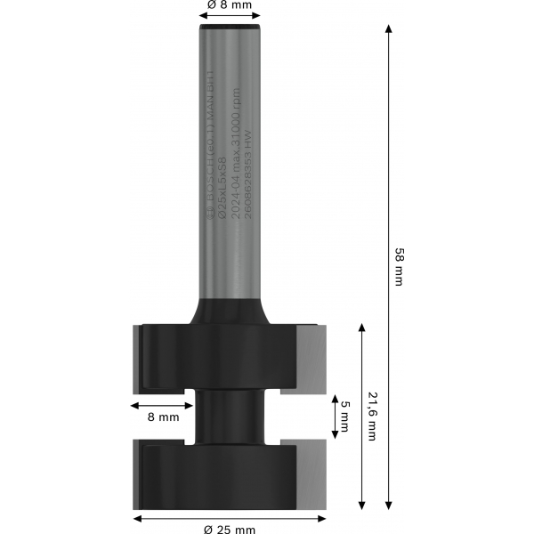 inglésFresa de lengüeta y ranura PRO, vástago 25 x L 5,8 mm