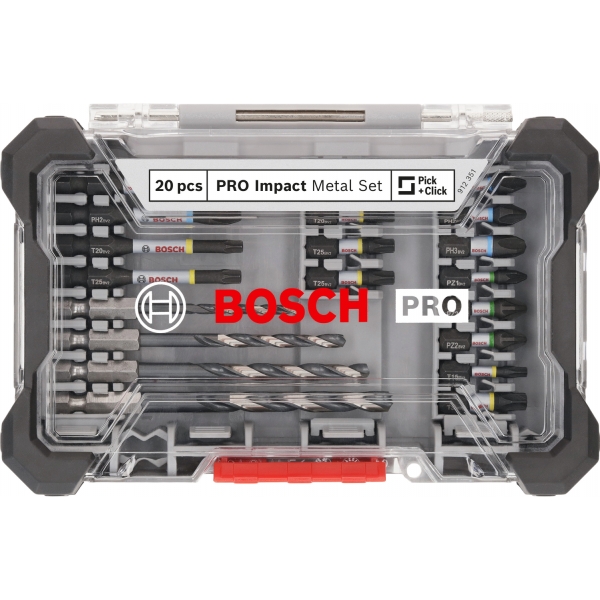 El juego de metal PRO Impact es una excelente opción para instaladores de interiores que necesitan puntas de destornillador y brocas fiables. Las puntas de destornillador tienen una zona de torsión que absorbe el par de torsión de la punta, lo que garantiza que no se rompan. Las puntas tienen anillos de color que indican el tipo de broca y marcas láser para ayudarle a elegir el tamaño que necesita. Las brocas de metal, fabricadas en acero de alta velocidad, están rectificadas para mayor durabilidad y precisión. El juego viene en un estuche Pick and Click que puede usar para mantener todos los artículos perfectamente organizados.