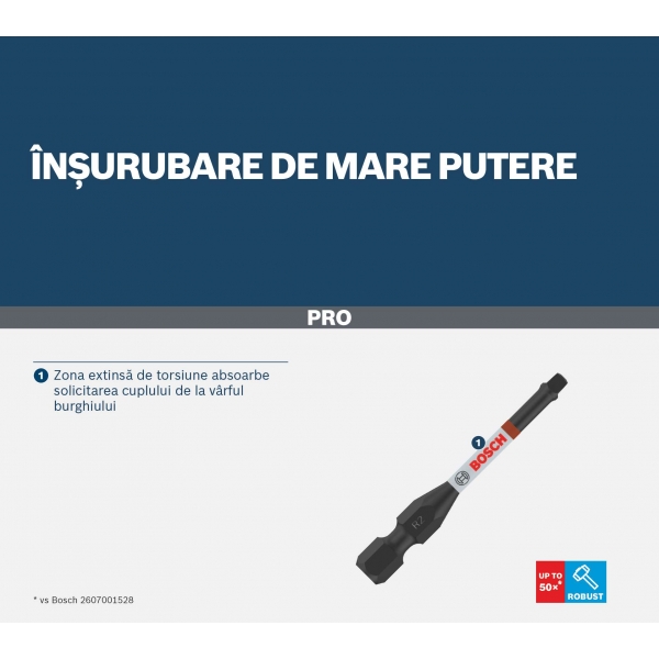 Hasta 50 veces más resistente que la punta de destornillador extra dura Bosch 2607001528