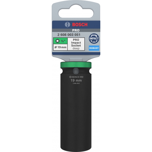 La llave de vaso de impacto PRO está fabricada en acero CRMO (cromo molibdeno) tratado térmicamente y tiene paredes gruesas para garantizar una alta resistencia a la torsión. Le hemos añadido un recubrimiento de fosfato negro para protegerla de la oxidación y la corrosión. Las llaves están marcadas con láser y codificadas por color para que pueda identificar la que necesita de inmediato. Cuentan con una ranura y un orificio para conectarlas a su destornillador de impacto mediante un pasador y un anillo, siempre que necesite un agarre firme.