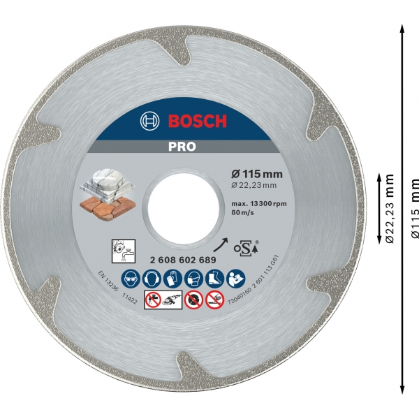 Bosch - PRO Multi Material - Disco de corte de diamantesegmentado, 115x22,2x2mm, corte en seco
