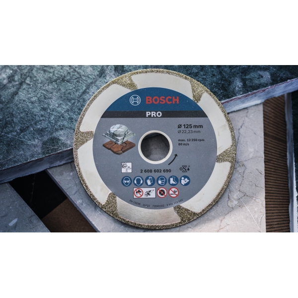 El filo continuo del disco PRO Marble permite cortar losas de mármol con precisión. Gracias a la galvanoplastia, la fina capa de polvo de diamante abrasivo se distribuye uniformemente sobre el filo. De esta manera, obtendrá cortes limpios, justo donde los necesita.