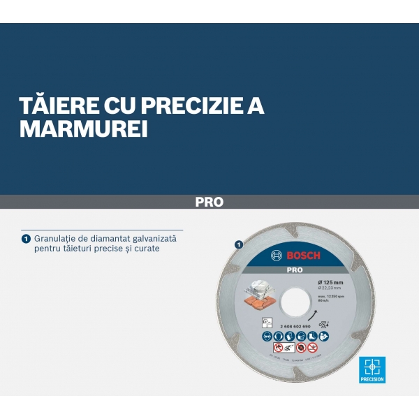 inglésDisco de corte de diamante PRO Mármol, 125 x 22,23 mm