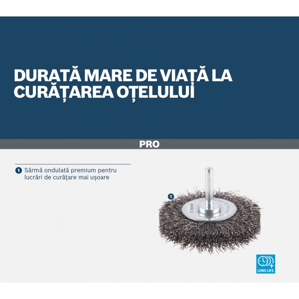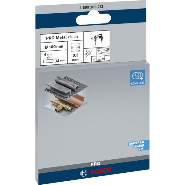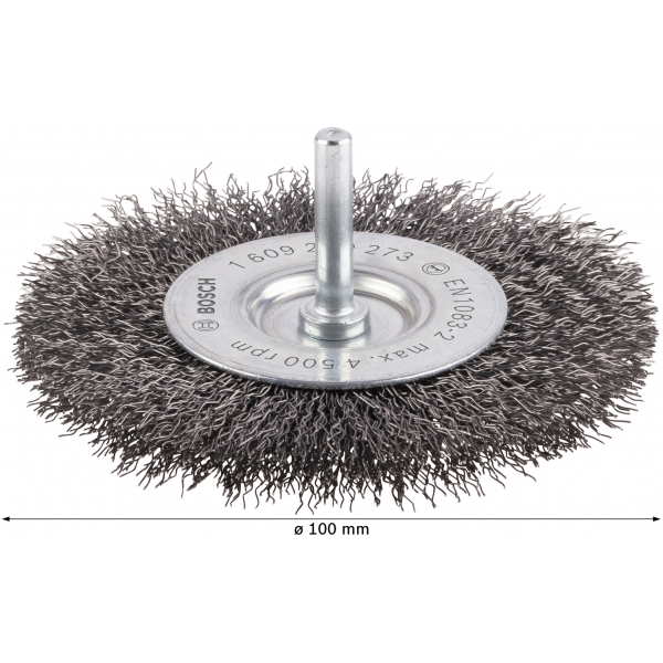 Bosch - PRO Metal clean - cepillodisco, 100x0.3 mm, alambre corrugado, vástago cilíndrico 6 mm