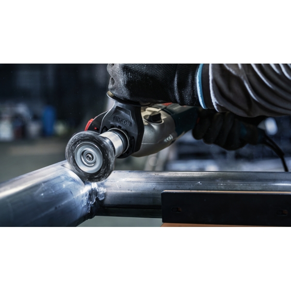 Para limpiar acero, por ejemplo, eliminar óxido, pintura y áreas descoloridas de las costuras de soldadura, para pulir y lijar mate.