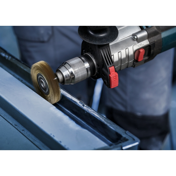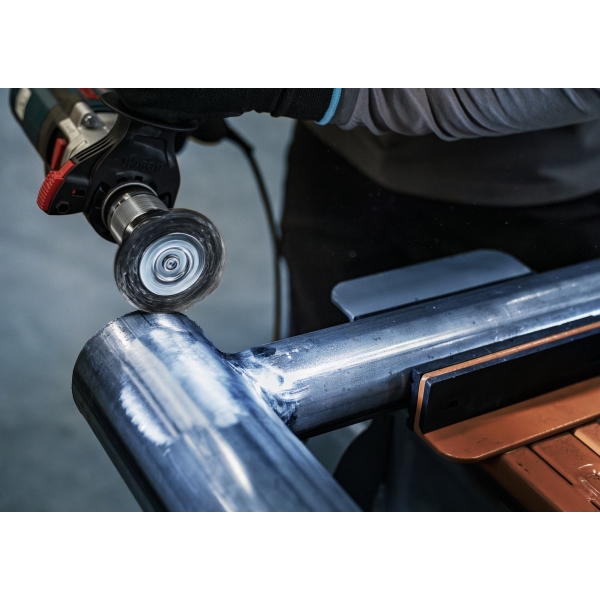 El cepillo de disco de alambre PRO Metal Clean es un accesorio duradero que querrá tener a mano en su taller de metalistería. Lo hemos equipado con alambre ondulado de primera calidad para garantizar que pueda realizar tareas de limpieza más ligeras con eficacia. El cepillo de disco de alambre es una excelente opción para limpiar superficies pequeñas, bordes y ranuras en acero.