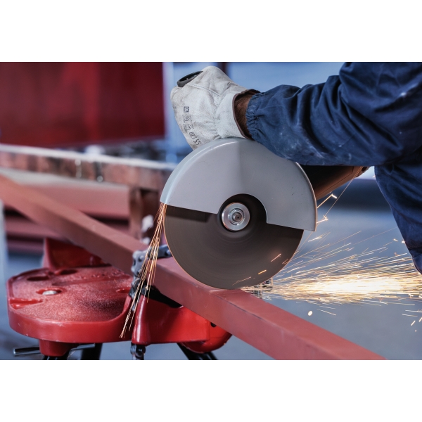 Fabricamos el duradero disco de corte PRO Metal con granos de óxido de aluminio de primera calidad para garantizar un corte eficiente. Además, combinamos los granos con rellenos funcionales y los incorporamos en una matriz de resina fenólica para mayor resistencia mecánica y térmica. Reforzamos el disco con una malla de fibra de vidrio de alta calidad para garantizar un rendimiento más seguro y estable.