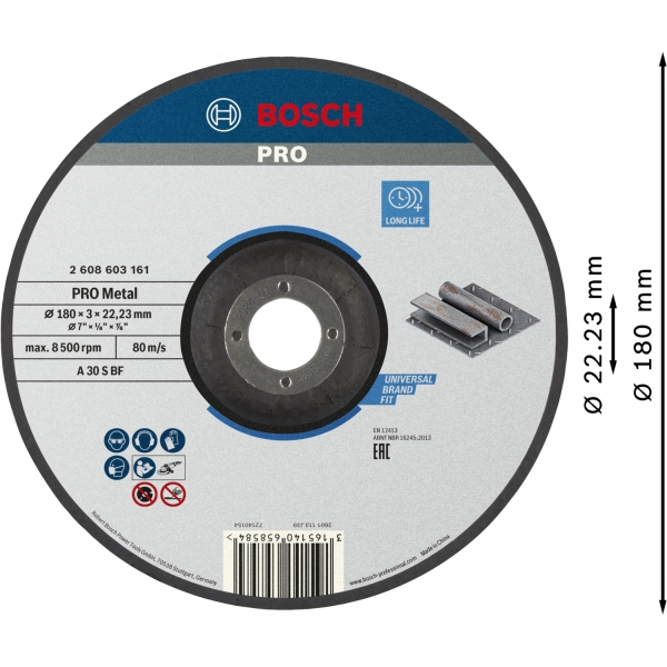 Bosch - PRO Metal - Disco de cortemetal, 180x22,2x3mm, 1 cada