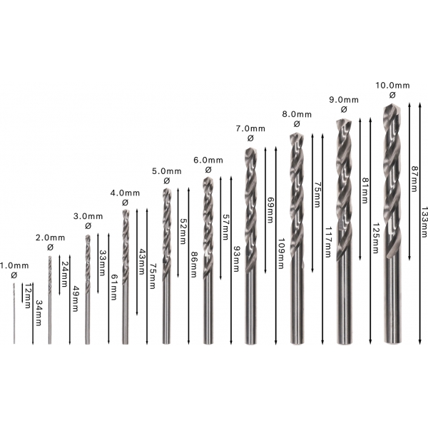 inglésJuego de 10 brocas helicoidales PRO Metal HSS-G