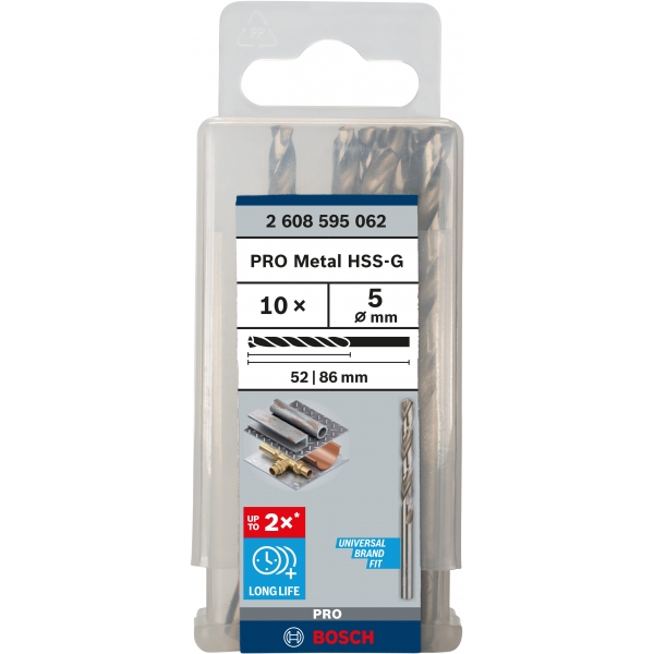 Las brocas PRO Metal HSS-G son una excelente opción para trabajadores de la construcción e instaladores que necesitan brocas metálicas duraderas para taladrar acero aleado y no aleado, metales no ferrosos, hierro fundido, plásticos y madera. Las fabricamos con acero rápido de alta calidad y las rectificamos para garantizar precisión, dureza y resistencia a altas temperaturas. Incorporamos una punta hendida para facilitar el inicio de los agujeros con precisión.