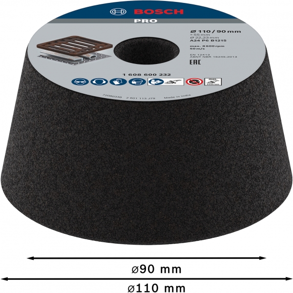 Bosch - PRO Metal - Rueda de copa cónica para piedra, 110x- mm, granulación 24, metal