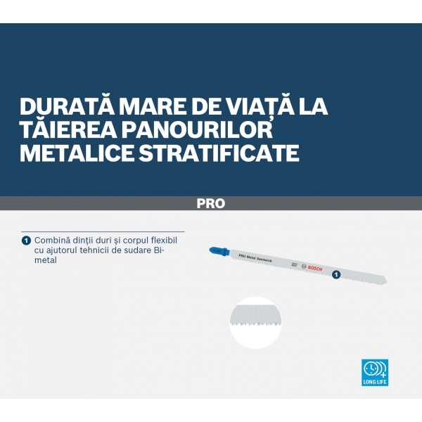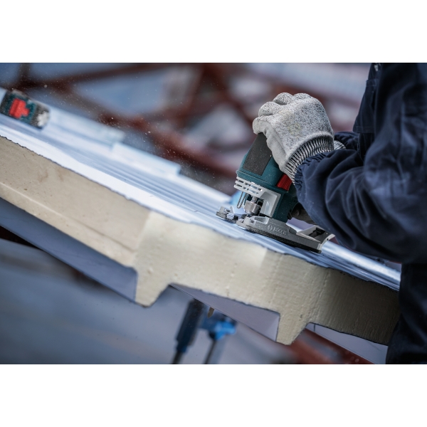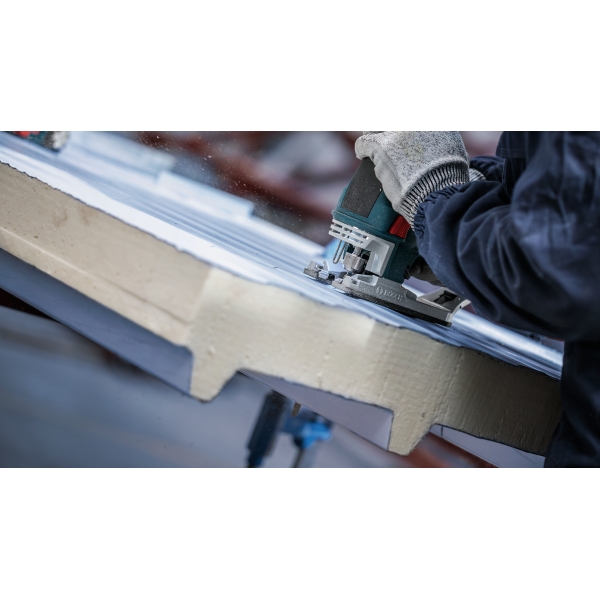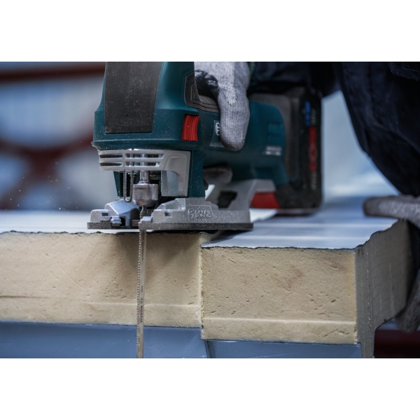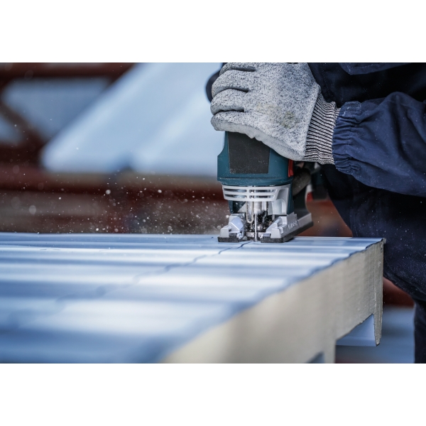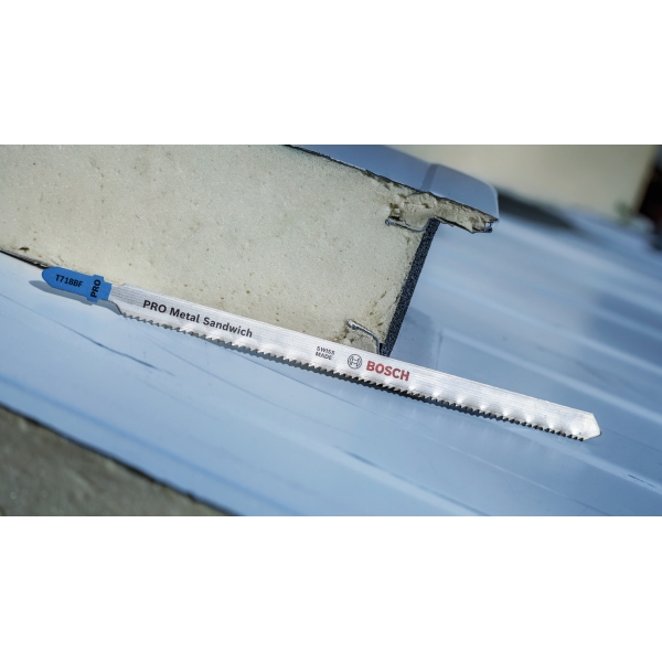 Cortar paneles sándwich de metal requiere una hoja de sierra de calar que no solo sea resistente, sino también lo suficientemente larga como para cortar el resistente material multicapa. Similar a la duradera hoja PRO Metal Sandwich T718BF, tiene una longitud de 180 mm para ayudarle a cortar paneles sándwich de metal con facilidad, una y otra vez.