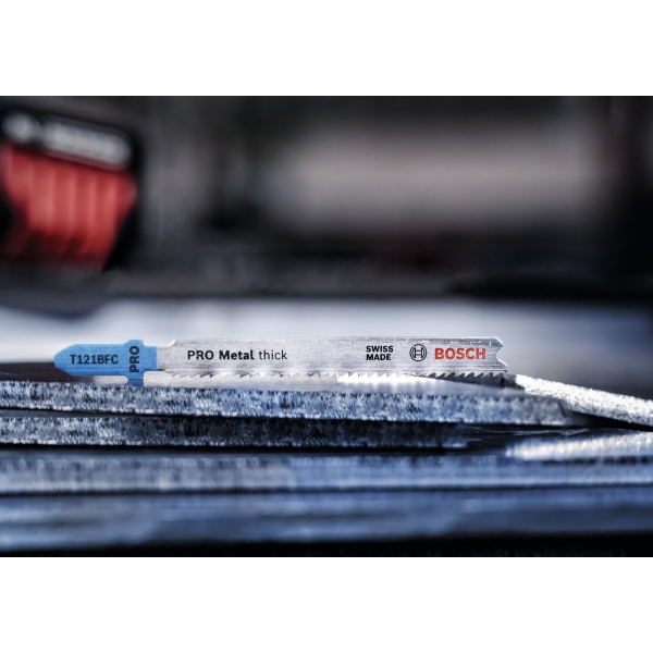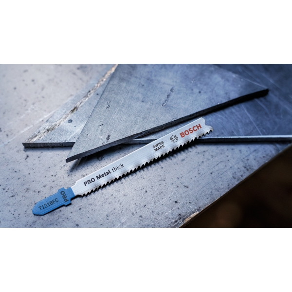 ¿Trabajas en metal y buscas una hoja de sierra de calar resistente y duradera para cortar chapa? Prueba la PRO Metal Thick T121BFC. Hemos endurecido sus dientes con un recubrimiento para garantizar su resistencia al calor y la oxidación, lo que te ayudará a obtener cortes rectos en chapa de grosor medio, siempre.