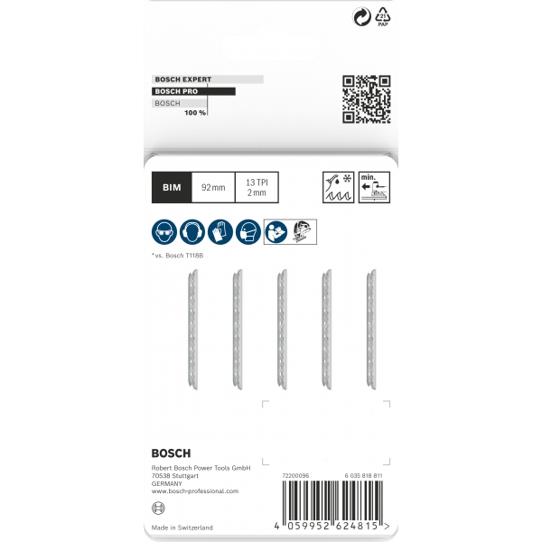 Bosch - PRO Metal thick T121BFC - Juego de hojas de sierra pendular, varilla con un umbral de sujeción (T), 92 mm, metal, corte recto y fino, 5 piezas