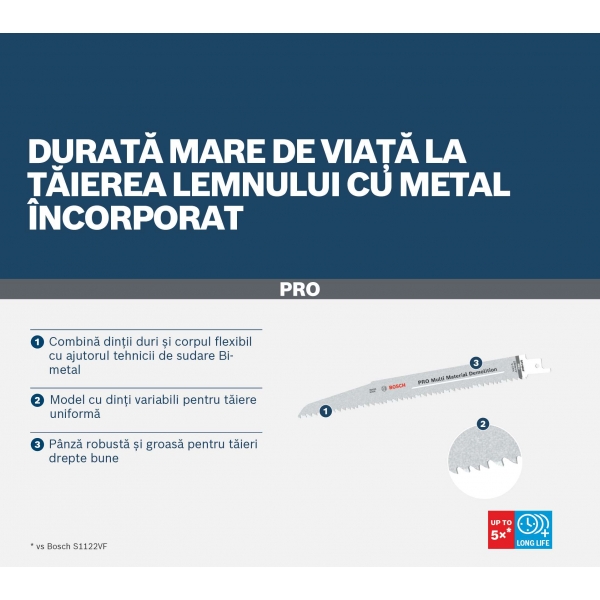 Hasta 5 veces más duradera que la hoja de sierra Bosch S1122VF