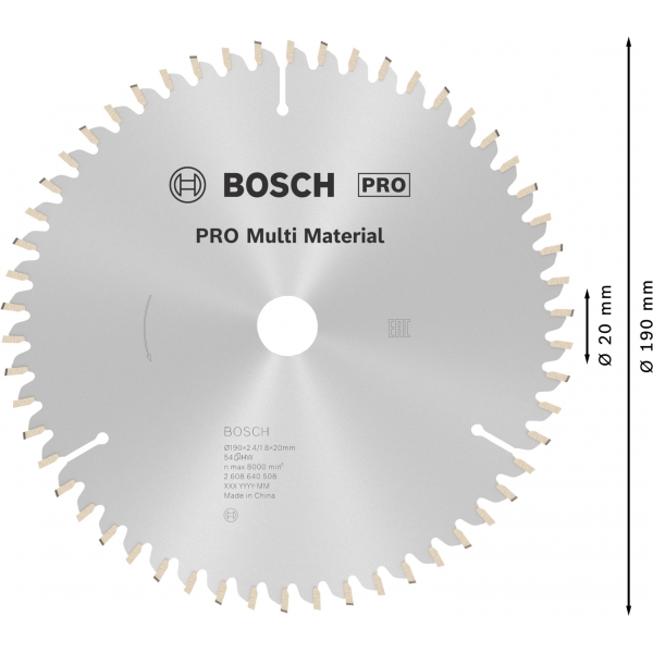inglésHoja de sierra circular multimaterial PRO, 190 x 2,4 x 20 mm