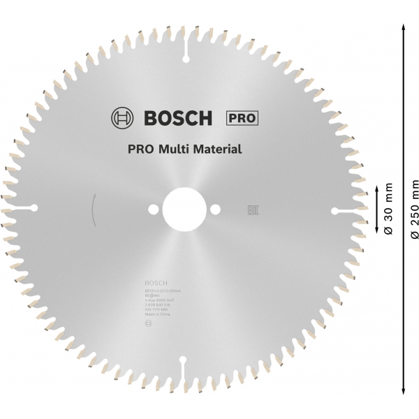 Bosch - PRO Multi Material - Hoja de sierra circular,multimaterial, 250x30x3.2mm, 80 dientes
