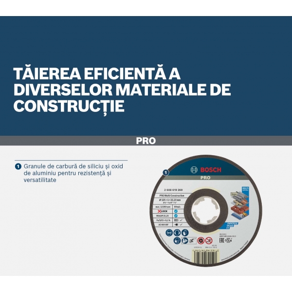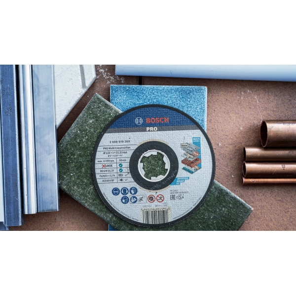 Trabajar en una obra implica cortar a menudo diferentes materiales. Un disco de corte versátil le ayuda a ahorrar tiempo y esfuerzo. Por eso creamos el PRO Multi Construction. Utilizamos una mezcla especial de abrasivos para garantizar un corte eficiente de diferentes materiales.