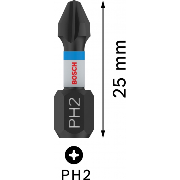 Juego de 2 puntas de destornillador de impacto Phillips PRO , PH2, 25 mm