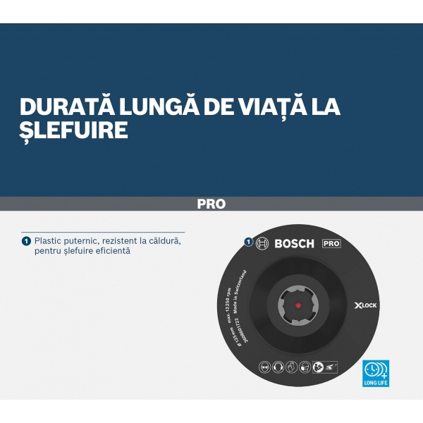 Bosch - PRO X-LOCK - Plato de lija con velcro,115 mm, sin agujeros, composición dura, -