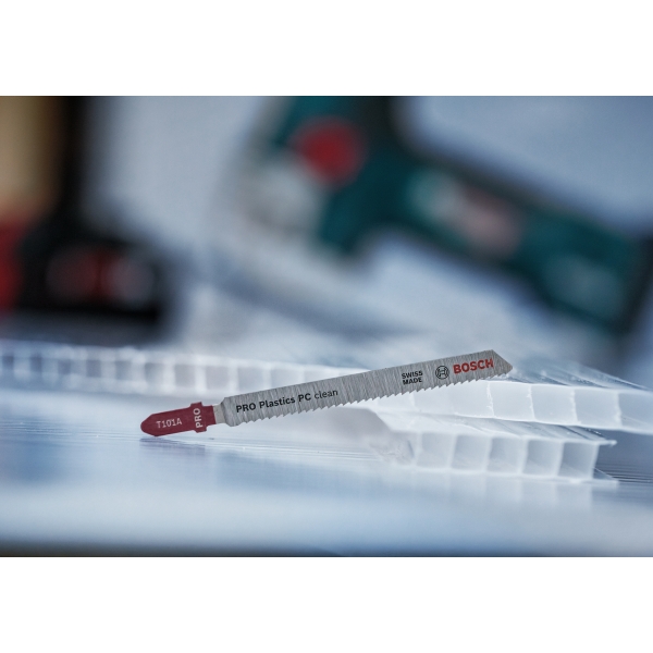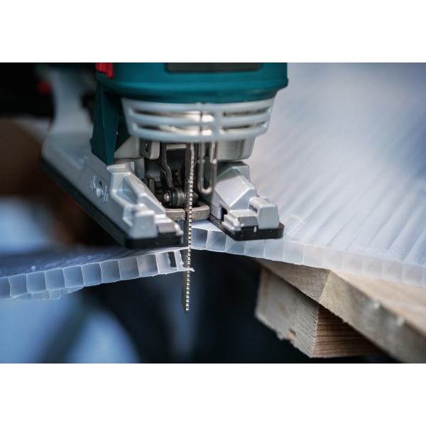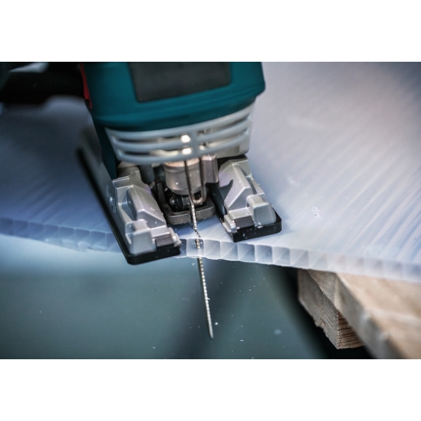 Cortar plásticos sensibles al calor, como el policarbonato (PC), requiere una hoja afilada que reduzca el calor y evite que el material se derrita. Creamos la hoja de sierra caladora PRO Plastics PC clean T101A para facilitarle cortes limpios en láminas de PC.