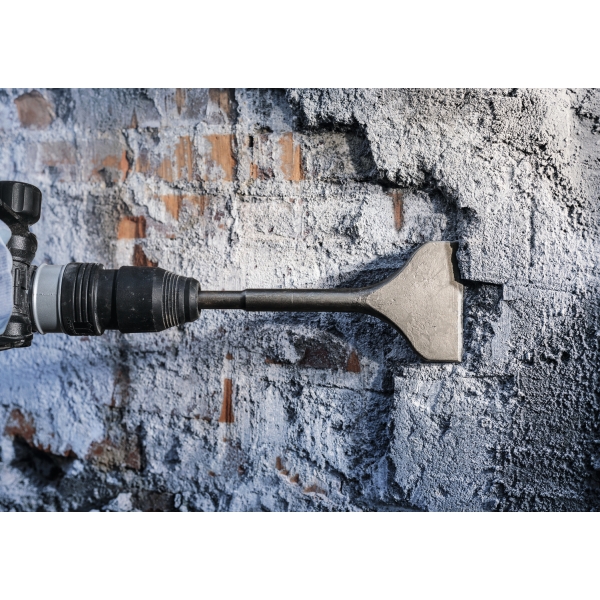 El PRO SDS max-4C es un cincel ancho y duradero para trabajos de demolición y renovación. Su filo ancho garantiza un rendimiento duradero. Úselo con su martillo perforador SDS siempre que necesite eliminar yeso, mortero, hormigón crudo y residuos de hormigón de suelos, así como de paredes de hormigón y ladrillo.