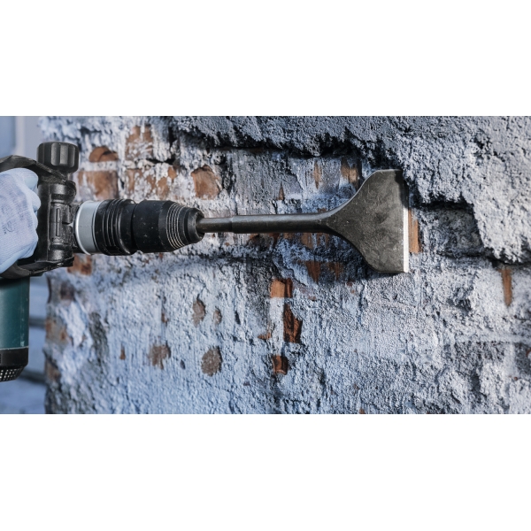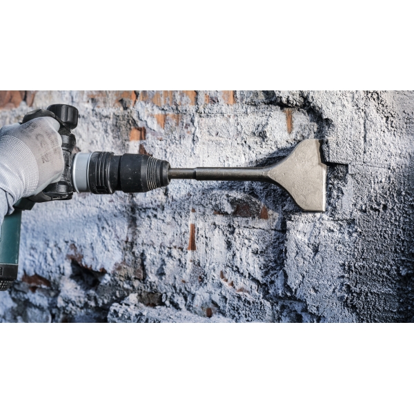 El PRO SDS max-4C es un cincel ancho y duradero para trabajos de demolición y renovación. Su filo ancho garantiza un rendimiento duradero. Úselo con su martillo perforador SDS siempre que necesite eliminar yeso, mortero, hormigón crudo y residuos de hormigón de suelos, así como de paredes de hormigón y ladrillo.