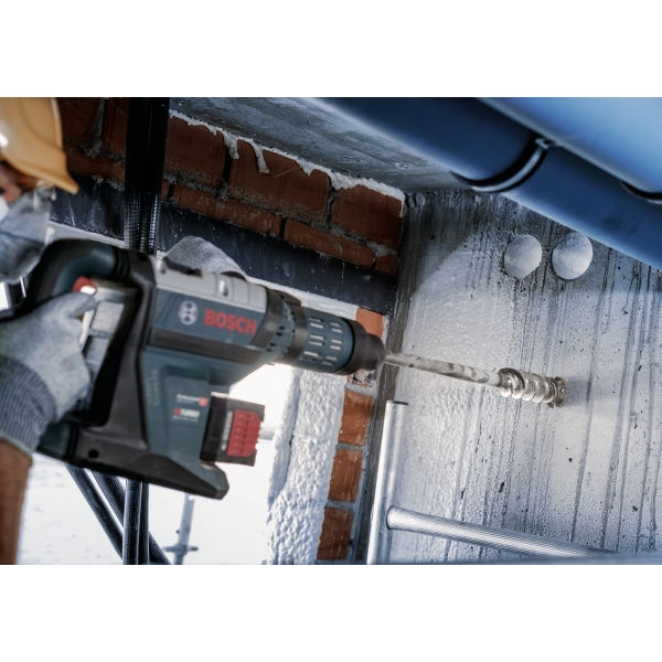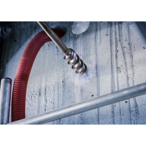 Perforar agujeros grandes en hormigón requiere la broca adecuada. Una broca con un filo lo suficientemente resistente como para cortar el material y un vástago que elimine eficazmente las virutas y el polvo de hormigón. Como la broca PRO SDS max Break Through, diseñada para ayudarle a perforar agujeros grandes una y otra vez.