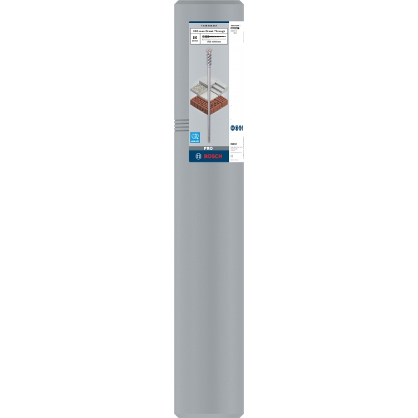 La broca PRO SDS max Break Through perfora materiales con su filo de corte de 3 filos. Fabricada con carburos de alta calidad, aglomerada al vacío y endurecida para una resistencia y un rendimiento duraderos. Sus dos ranuras en forma de U y su vástago cónico evitan que se obstruya con polvo y virutas de hormigón. Permite perforar agujeros de 45 a 80 mm de diámetro.