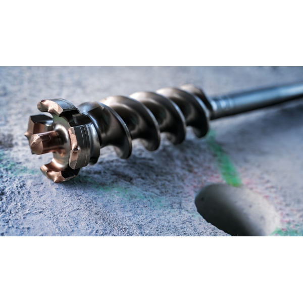Perforar agujeros grandes en hormigón requiere la broca adecuada. Una broca con un filo lo suficientemente resistente como para cortar el material y un vástago que elimine eficazmente las virutas y el polvo de hormigón. Como la broca PRO SDS max Break Through, diseñada para ayudarle a perforar agujeros grandes una y otra vez.