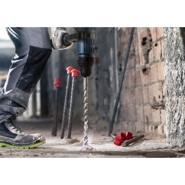 El hormigón armado es un material común en la construcción de infraestructuras, tanto comercial como residencial. Creamos la broca PRO SDS max-4 para ayudar a los trabajadores de la construcción a perforar este material. Las brocas tienen un diseño duradero con 4 filos de corte, lo que evita que se atasquen o rompan al entrar en contacto con las varillas de refuerzo.