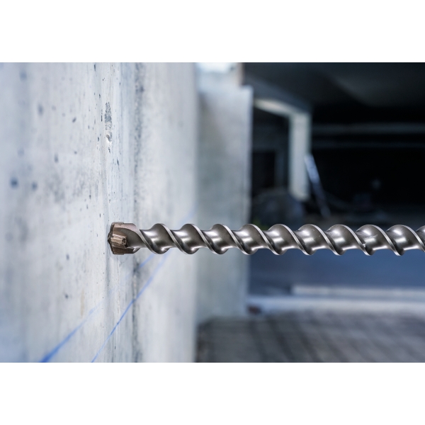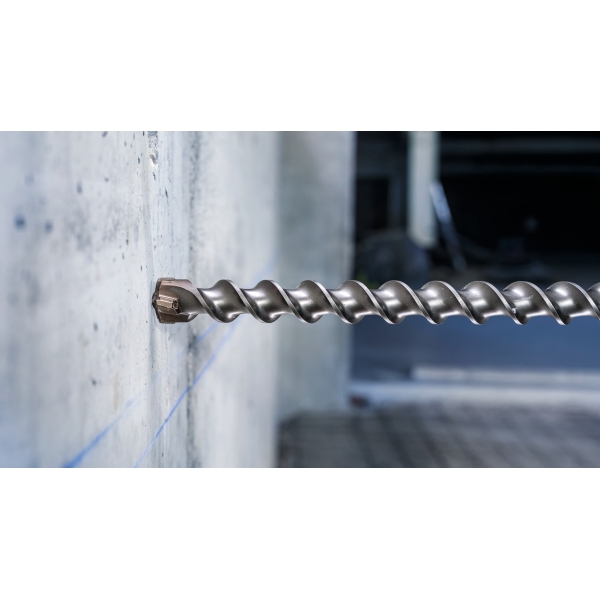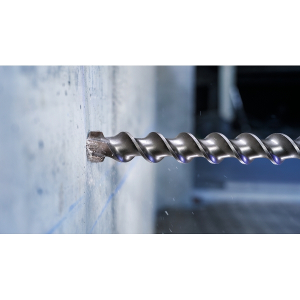 La broca SDS max-7 perfora materiales duros gracias a su robusto cabezal con 4 filos de carburo. Sus ranuras tienen un diseño especial que reduce las vibraciones y elimina el polvo eficazmente. Así podrá disfrutar del rendimiento del taladro durante mucho tiempo.