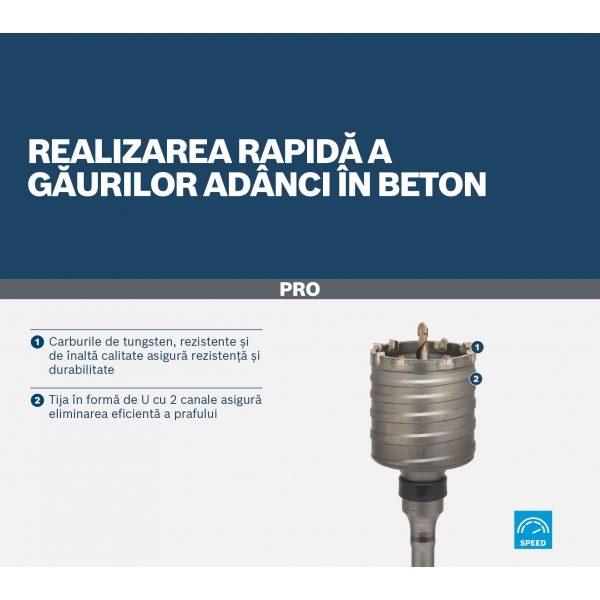 inglésDiseñado para realizar agujeros profundos en hormigón.