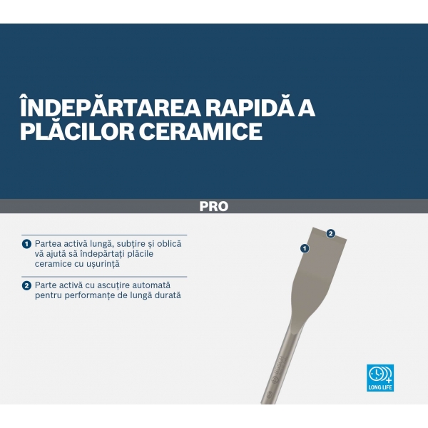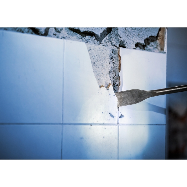 La posibilidad de retirar azulejos sin romperlos facilita el trabajo del renovador. Hemos creado el cincel para azulejos de cerámica PRO SDS plus-5C con una parte de trabajo larga e inclinada para garantizar que pueda retirar azulejos de forma limpia y eficiente.