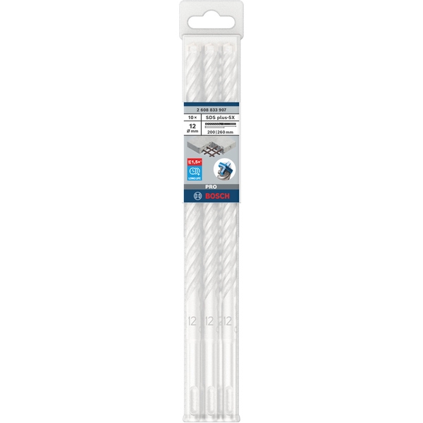 Bosch - PRO SDS plus-5X - Juego de brocas SDS-Plus, 12 mm, 10 piezas, Hormigon armado